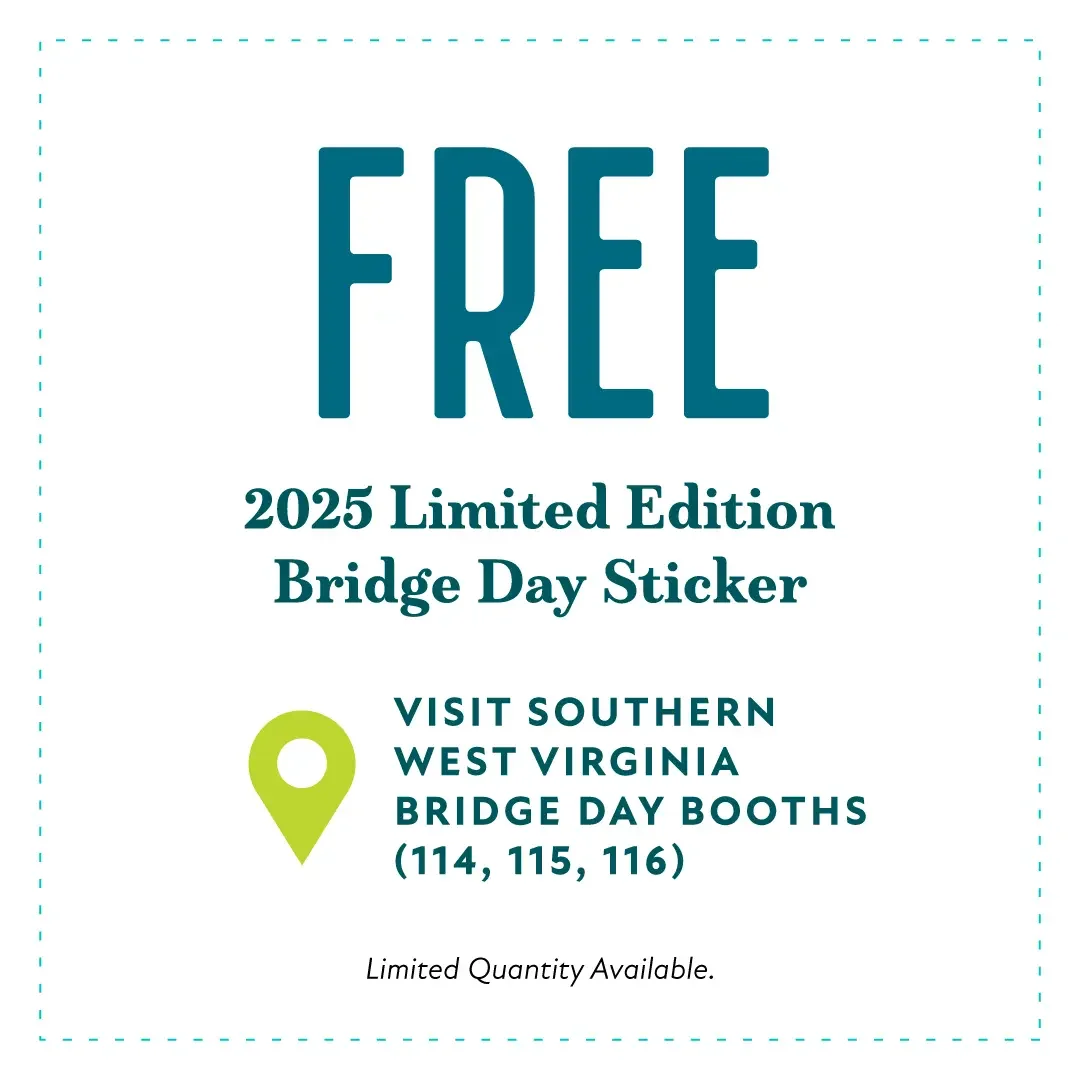 We’re excited to see you at Bridge Day! Stop by the Visit Southern West Virginia booth, located on the south side of the bridge and present your coupon to receive your limited-edition Bridge Day sticker! Offer only valid on October 18, 2025. Make sure to screenshot or download your coupon below!